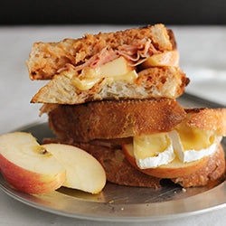 This beast has everything you could ever want in a sandwich – tart apples, creamy brie from Blythedale Farm in Corinth, VT, savory prosciutto & just a little caramel sweetness to bring it all together on fresh slices of ciabatta from our favorite local bakery,Red Hen Baking Co. in Middlesex, VT.