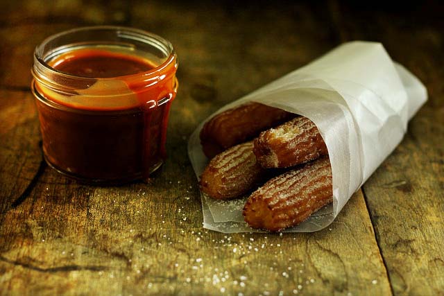 Warm the caramel over medium heat in a small sauce pan and serve with the churros.