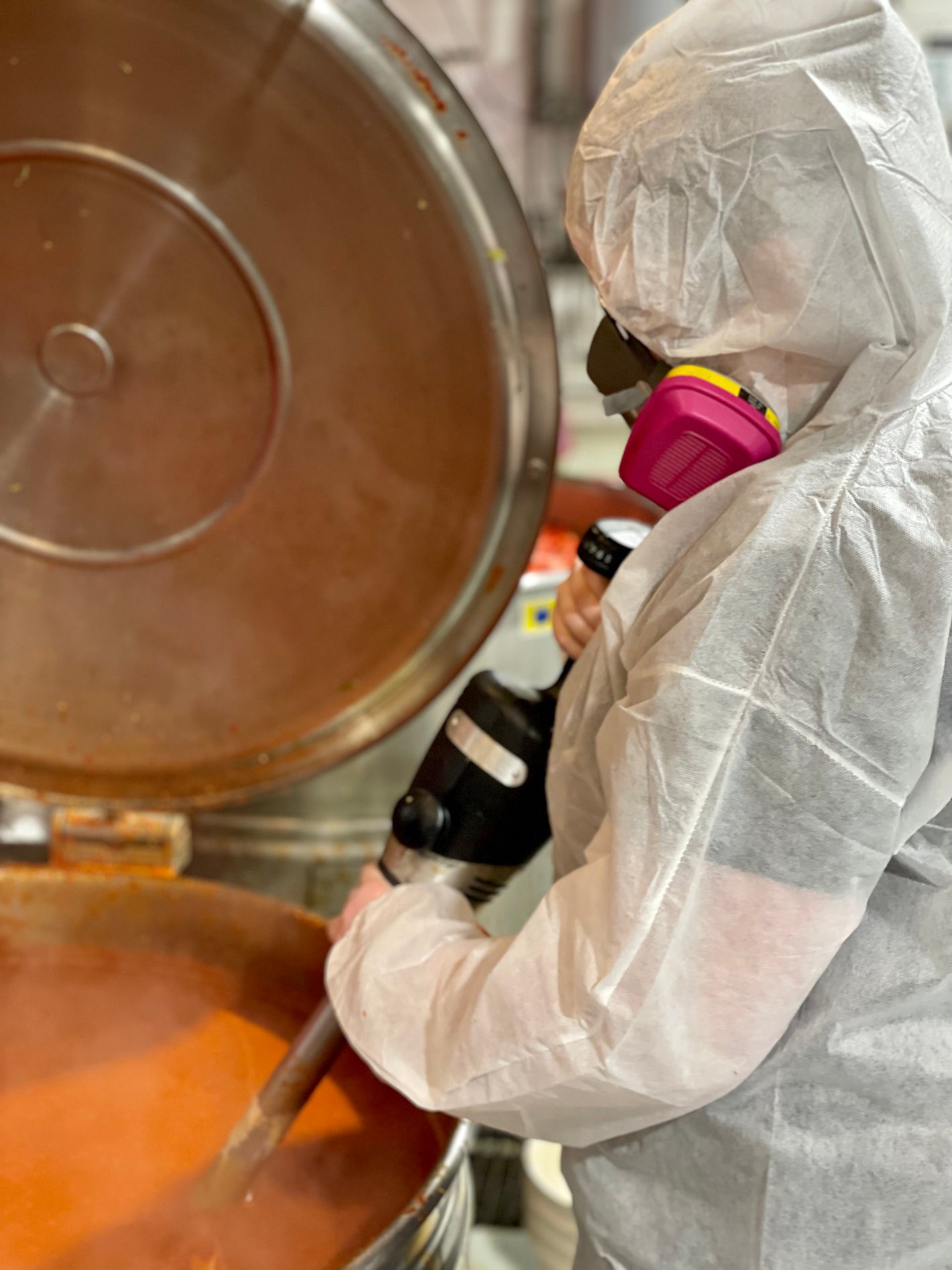 Production: Stirring hot sauce