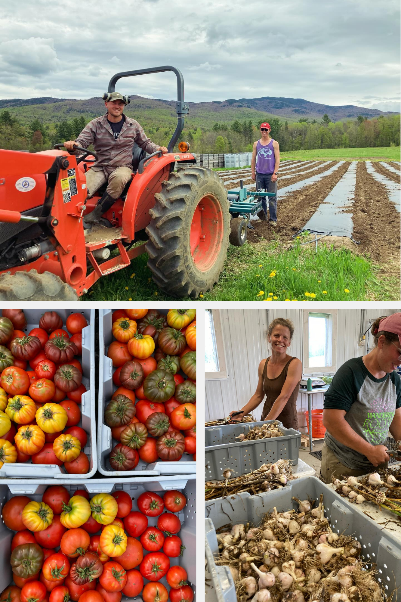 Holly and Angus met in Johnson, VT in 2006. Their whirlwind romance included buying a truck and almost immediately driving to New Mexico where they spent their first winter together before returning to Vermont in 2007. After years of farm jobs for Angus and sales jobs for Holly, the two started Three Crows Farm in 2011, which they quickly outgrew. In 2015, they took the opportunity to move to West Farm, a former dairy on the property, and convert it into a 10 acre wholesale vegetable farm.