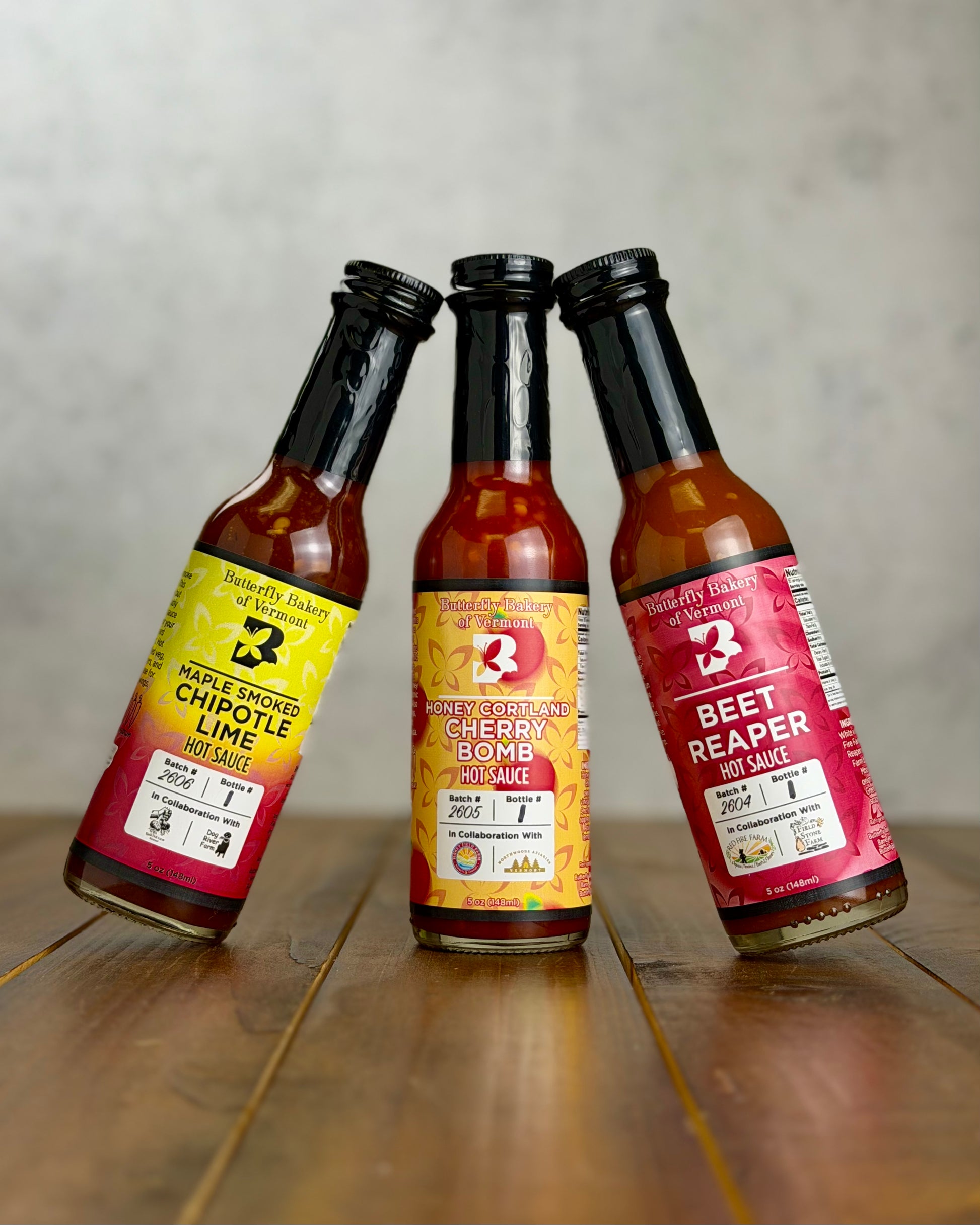 A collection of all three hot sauce micros released in January 2026, including: