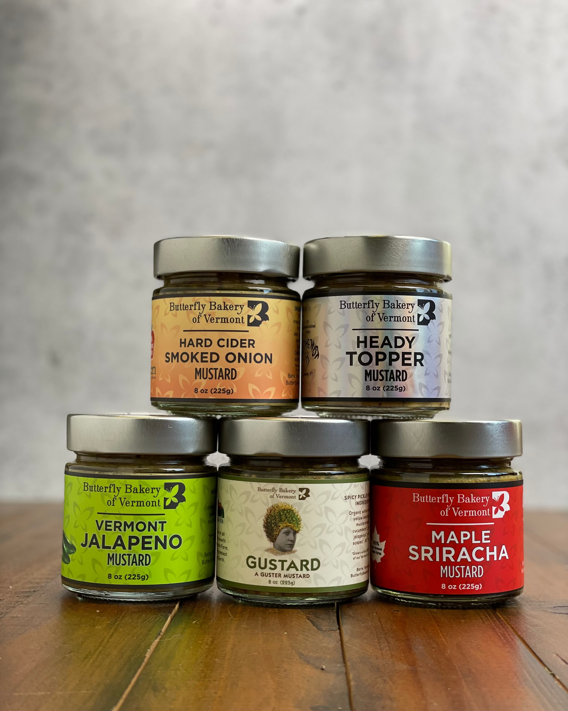 The Mustard Lovers Bundle is for anyone who craves big, bold flavor on every bite. Inside you’ll find our hoppy Heady Topper Mustard, smoky-tart Hard Cider Smoked Onion Mustard, wonderfully bold Gustard Mustard, fiery-sweet Sriracha Mustard, and zesty Vermont Jalapeño Mustard. From hot-off-the-grill sausages to cheese boards and sandwiches, this bundle covers the full spectrum of mustard magic. Vermont-made, small-batch, and crafted to turn everyday meals into flavor adventures.